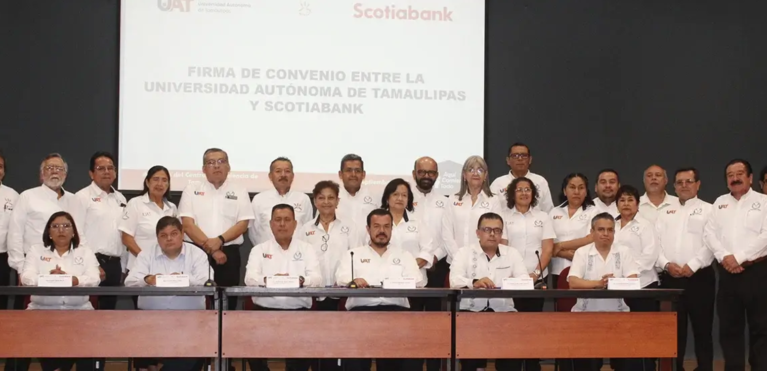 En representación de Scotiabank, firmó el convenio el director de Promoción Fiduciaria Norte, Lic. Enrique Javier Garza Cisneros, quien reconoció a las autoridades universitarias por continuar fortaleciendo este rubro, tras resaltar que la UAT ha logrado ser un referente por su calidad académica en el estado y el país.
