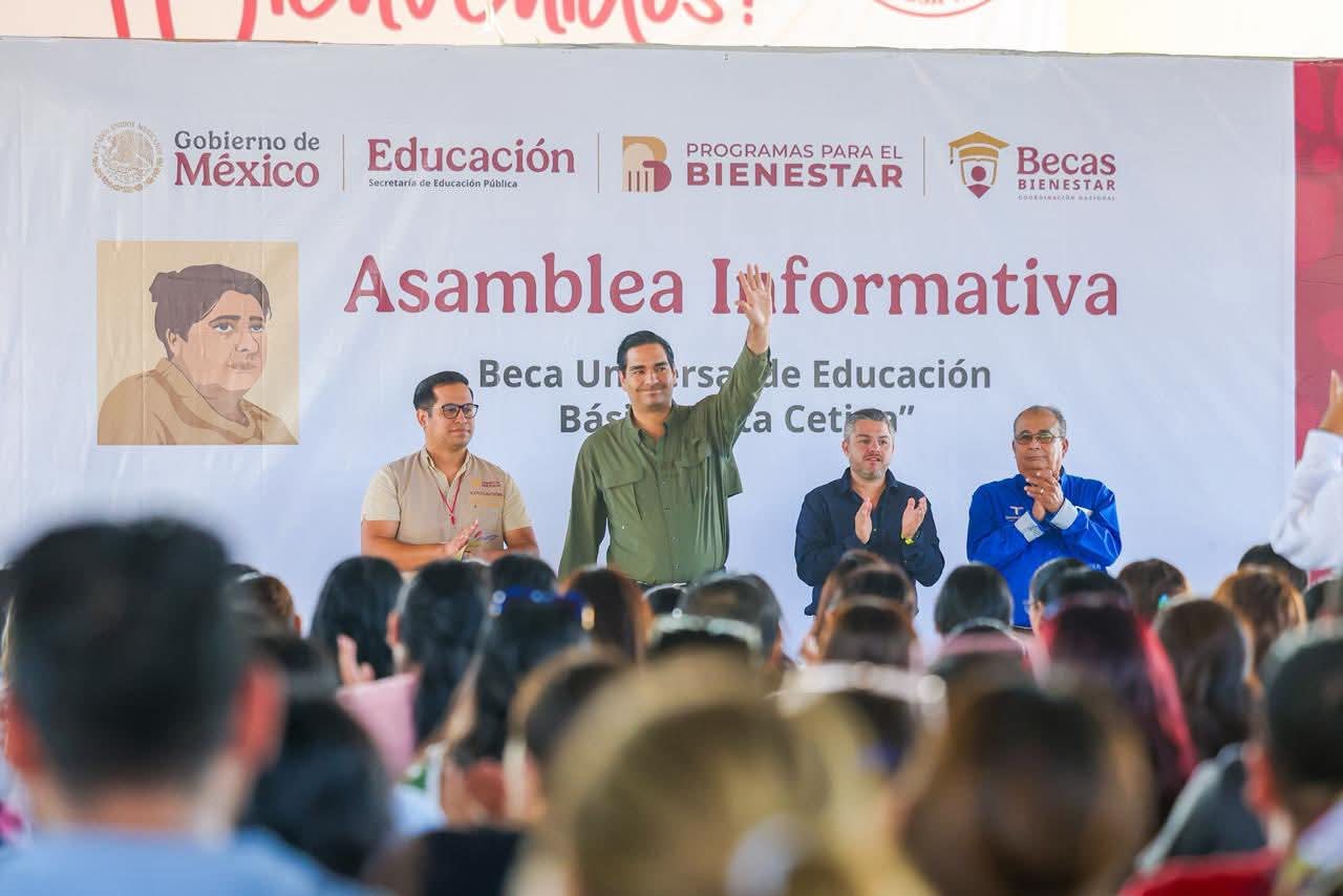 La Asamblea Informativa de la Beca Universal de Educación Básica “Rita Cetina” se llevó a cabo este miércoles 17 de septiembre, presidida por el Alcalde Carlos Peña Ortiz y el Coordinador de Becas para el Bienestar, Alexander Alan Bolaños Tinoco.