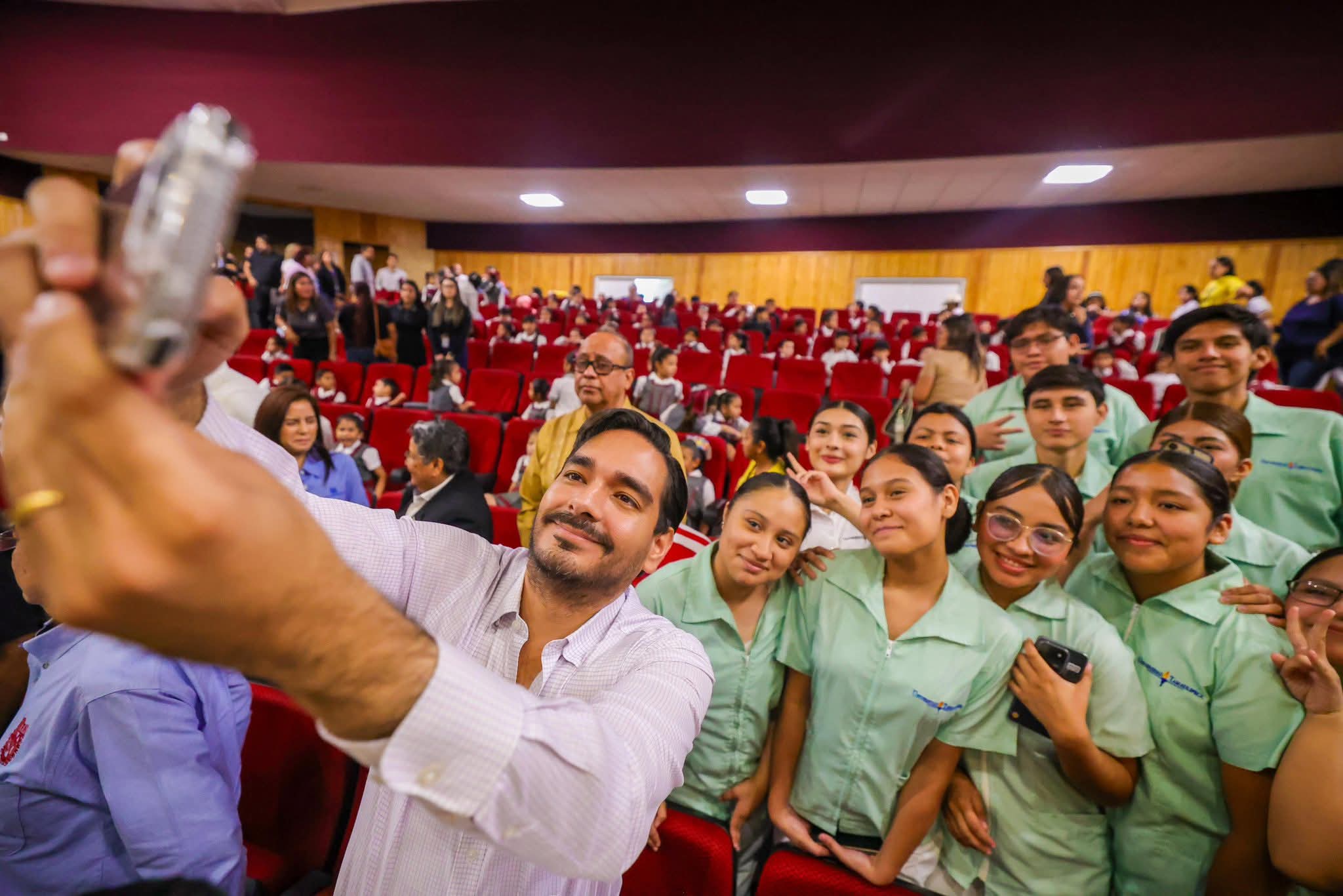 “Ustedes pueden hacer la universidad, luego sigue una maestría, un doctorado, la educación continua para poder ir capacitándote en los temas que a ustedes les importan y que puedan tener un impacto real en nuestra sociedad”, dijo el Alcalde ante alumnos de preparatoria, secundaria y primaria.