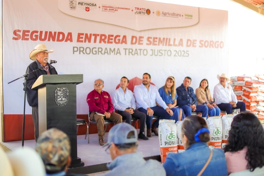“Me uno a las palabras de agradecimiento y reconocimiento hacia Carlos Víctor Peña Ortiz, Alcalde de Reynosa, por el programa Trato Justo, que ha sido un verdadero apoyo para las familias campesinas”, dijo con emoción ante familias del campo, el señor Eleodoro Quintero Ballesteros, en presencia de la Senadora Maki Esther Ortiz Domínguez y los Diputados Casandra Priscila De los Santos Flores, Claudia Alejandra Hernández Sáenz y Juan Carlos Zertuche Romero.