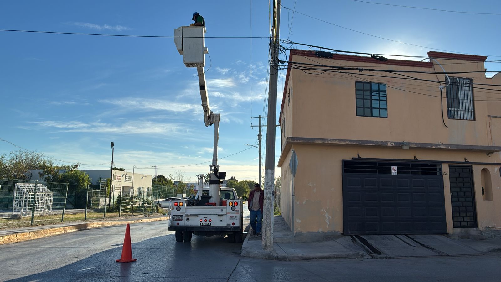 Reparación de Alumbrado Público. Se instaló un brazo, fleje, hebillas, cable y lámpara LED nueva frente al Tamul de la calle Cero en la colonia Los Muros. Estas acciones demuestran el compromiso del Gobierno Municipal del Alcalde Carlos Peña Ortiz con la limpieza y el mantenimiento de la ciudad.