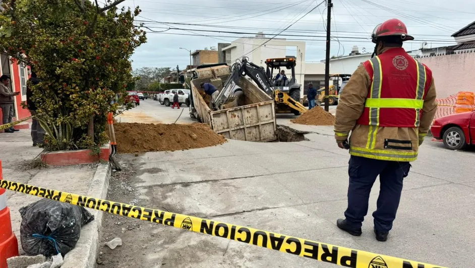 Un accidente inusual sorprendió a vecinos y autoridades de Ciudad Madero, Tamaulipas, cuando un camión de volteo quedó atrapado en un enorme socavón que se abrió en plena vía pública. El hecho ocurrió la mañana del 27 de enero de 2026 en la colonia Árbol Grande, generando alarma entre los habitantes y obligando a un despliegue inmediato de cuerpos de emergencia.