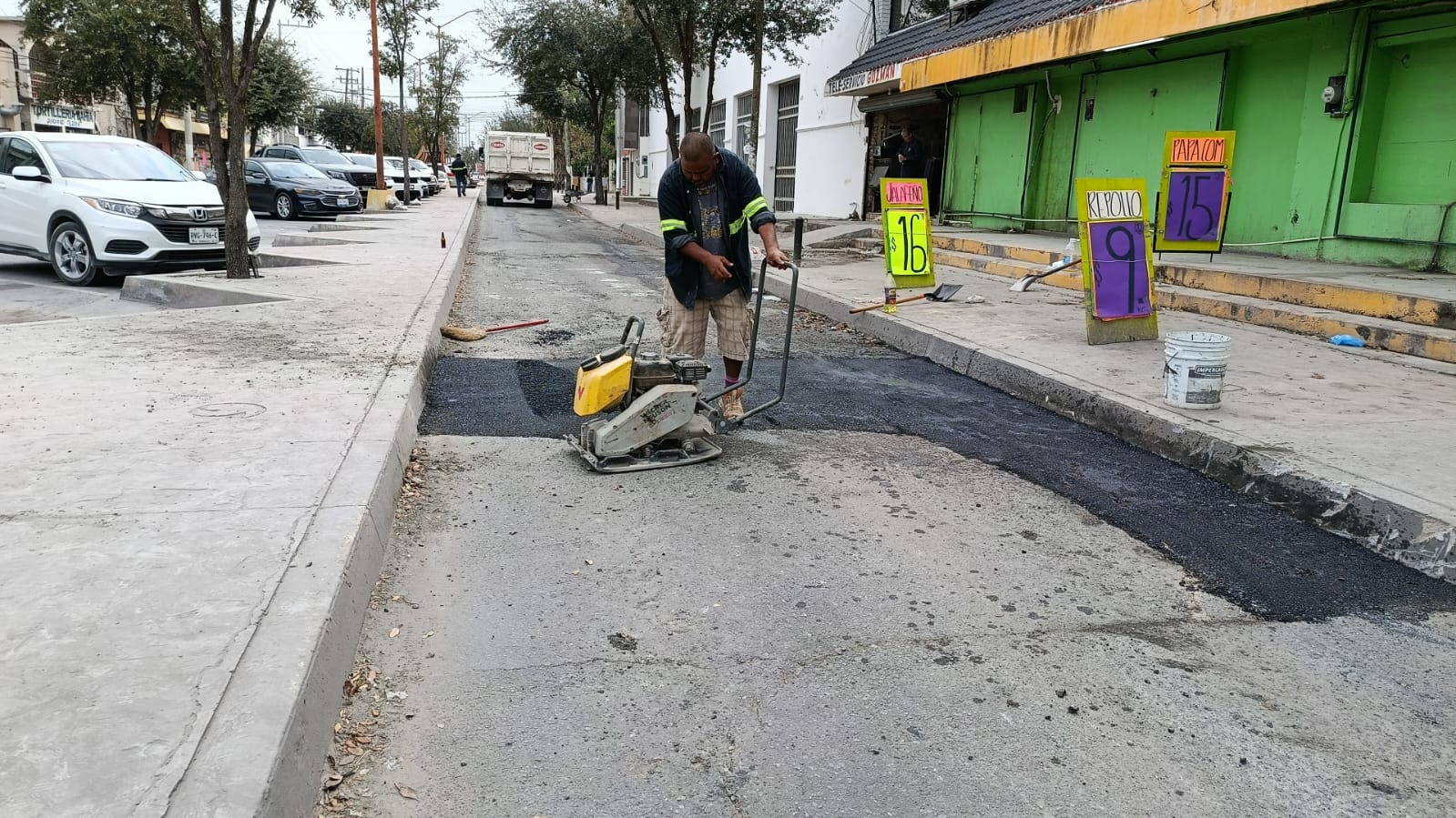 - Reparación de baches con carpeta caliente en la calle Oaxaca, colonia Rodriguez.